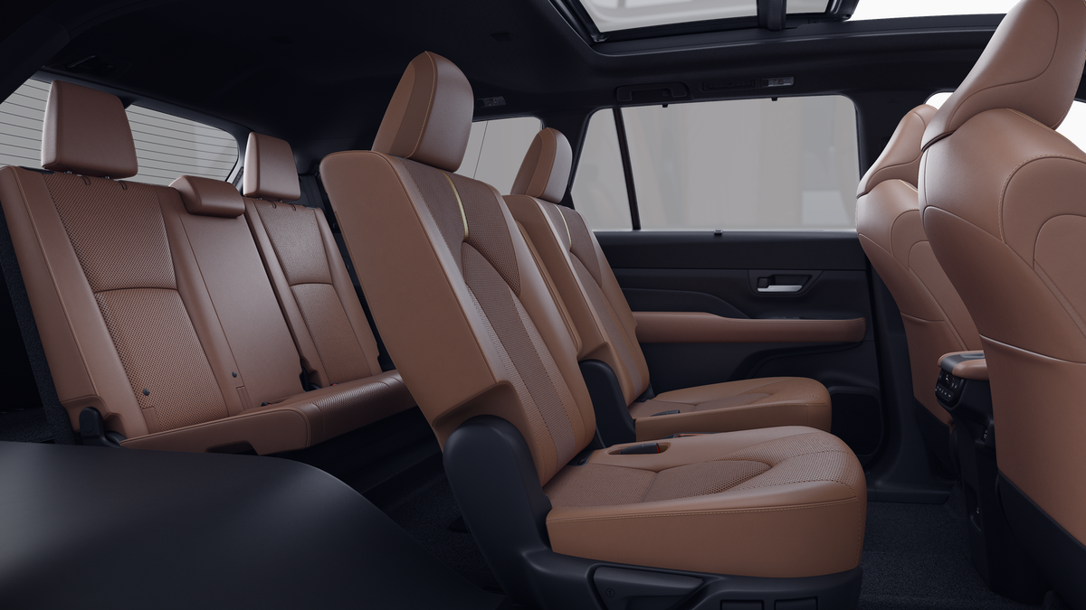 • 7-passenger seating with second-row fold-down captain's chairs and fold-down inboard armrests, adjustable headrests and two cup holders mounted on the floor; and 60/40 split, fold-down third-row seats with sliding headrests and recline function