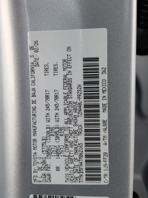 • Vehicle Name: Toyota Tacoma 2WD