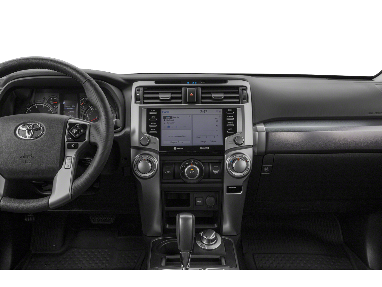 Inside, the 4Runner SR5 Premium pampers you with premium SofTex seating, heated front buckets, a power driver's seat, and a premium audio system with dynamic navigation. Stay connected with Apple CarPlay and Android Auto, while the Blind Spot Monitor and Rear Camera keep you aware of your surroundings.